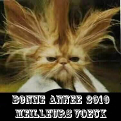 Comme le veut la tradition (mais aussi parce que ça me fait plaisir) je vous souhaite à tous et toutes une bonne et heureuse année 2010. Que cette année vous comble vous et vos proches, que tous vos voeux se réalisent, santé, amour, gloire et beauté et tout le tralala…