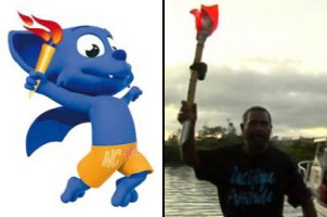 J’en viens maintenant au titre de mon post (il était temps) et à l’image qui illustre ces quelques lignes de fiel. Avant le début des JdP à proprement parler les organisateurs ont jugé judicieux de procéder à un « parcours de la flamme » (que je n’oserai qualifier d’olympique afin de ne pas faire insulte aux olympiades et à l’Olympe) ; pourquoi pas me direz-vous ? Tant qu’à faire dans le ridicule autant aller jusqu’au bout des choses ! Sauf que là ils ont réussi à faire encore plus ridicule que ridicule ; ladite flamme n’est qu’un vulgaire morceau de bois surmonté de deux feuilles cartonnées rouge sensées donner l’illusion d’une flamme… A mourir de rire tellement c’est pathétique ! Ils auraient au moins pu prévoir une flamme digne de ce nom dans leur budget…