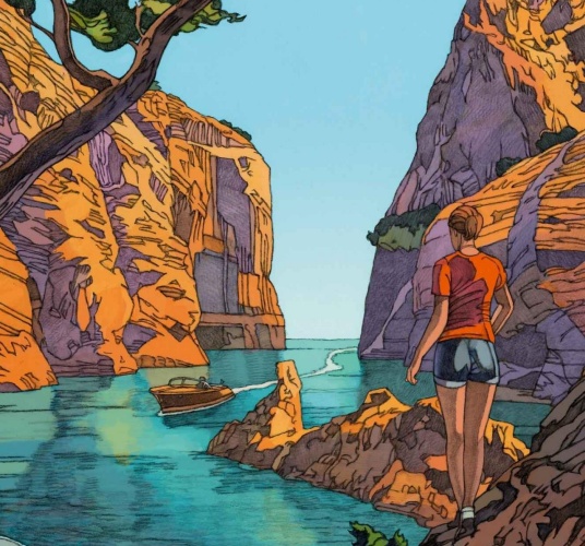 Le trait et le choix des couleurs de Miles Hyman collent parfaitement au récit. On en viendrait presque à regretter que cette île de Beaumont soit fictive, les illustrations nous donnent vraiment envie d’y passer des vacances… et plus si affinités.