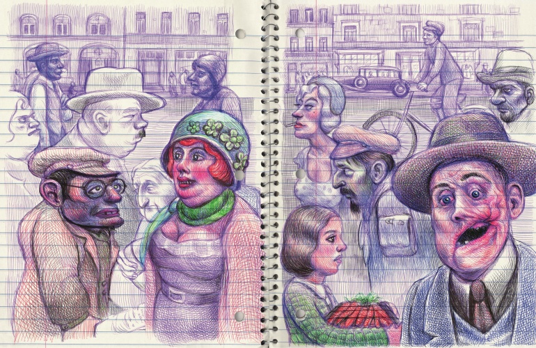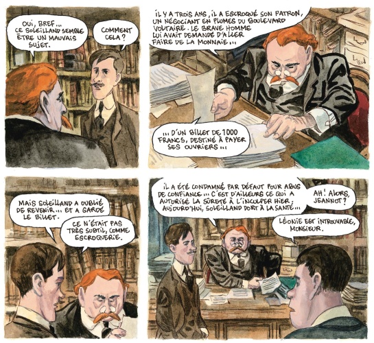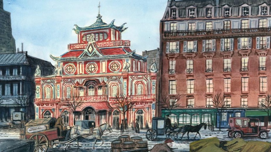 Les dessins à la gouache nous plongent au cœur de Paris au début du XXe siècle, chaque journée s’ouvre d’ailleurs sur une double page représentant une scène de vie ou des bâtiments parisiens (dont le Ba-Ta-Clan qui deviendra plus tard le Bataclan).